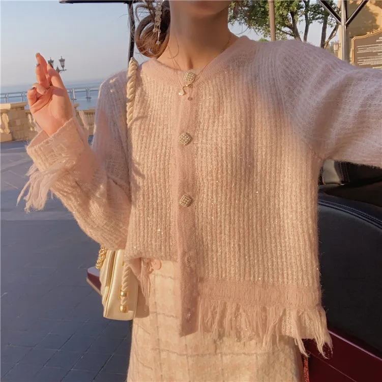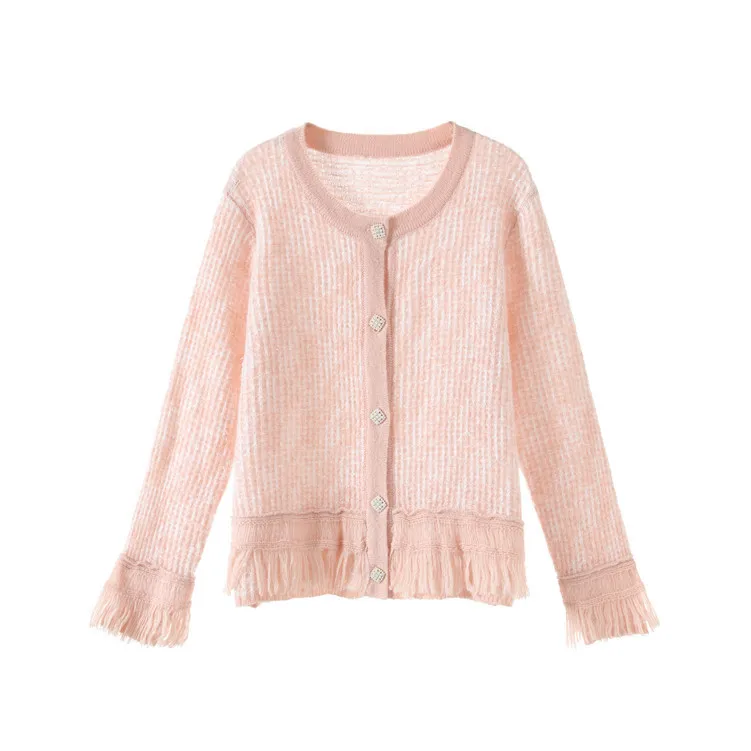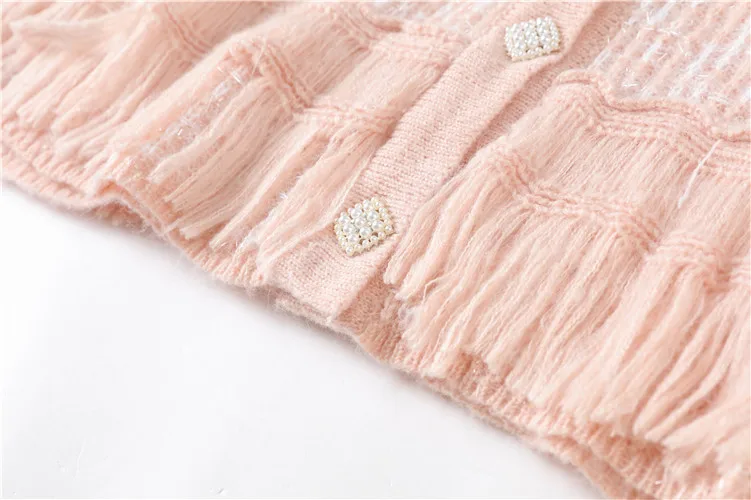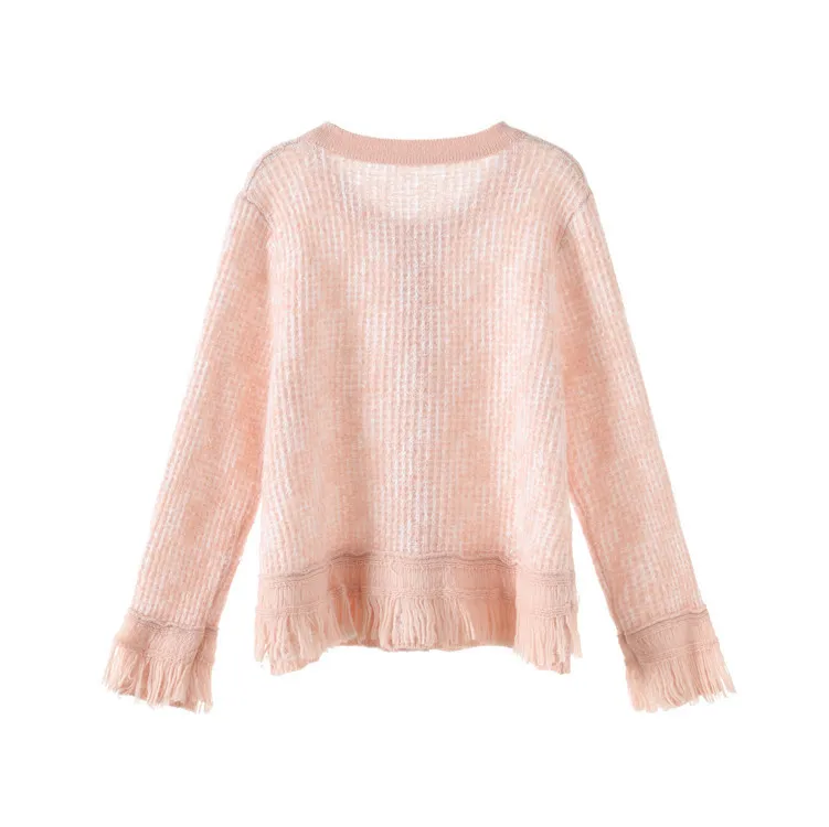 Big Sale New Pink sweater female temperament small sweet wind lazy thin tassel knitting cardigan SA0947 pear