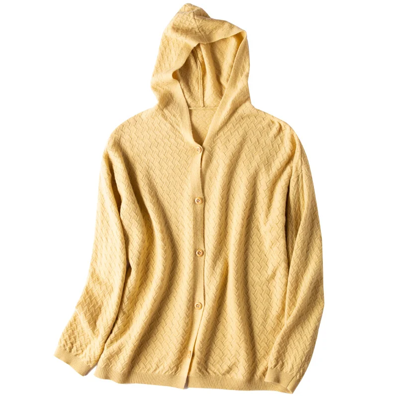 Promo Women Cardigans 100%Wool Hooded Cardigans For Women 2019 Fall Winter Plain Hooded Sweaters Causal K
