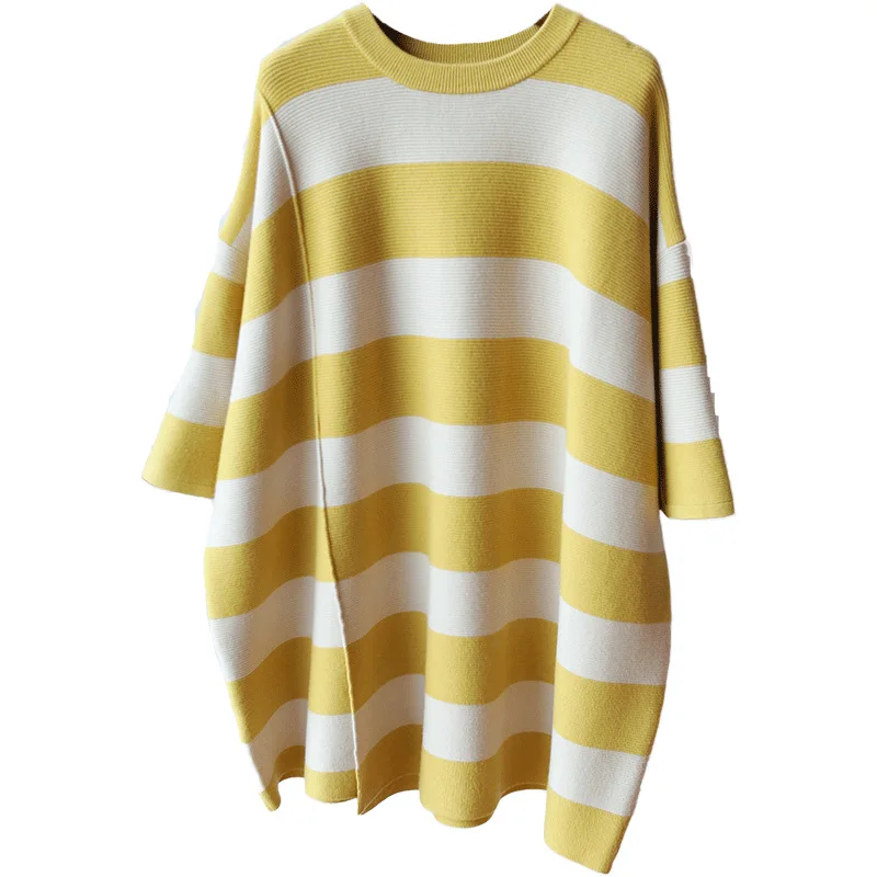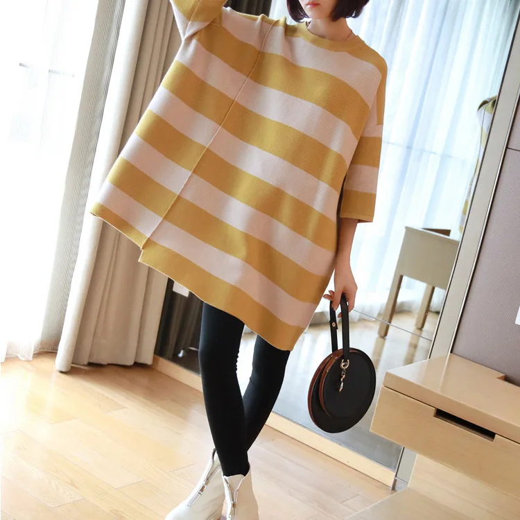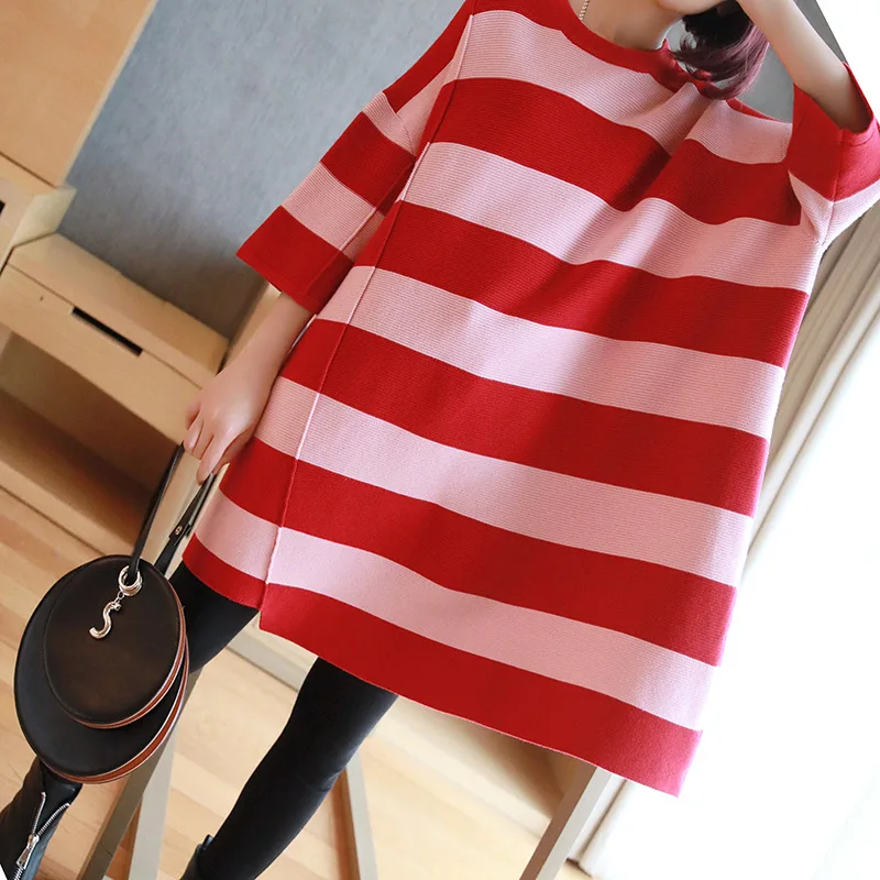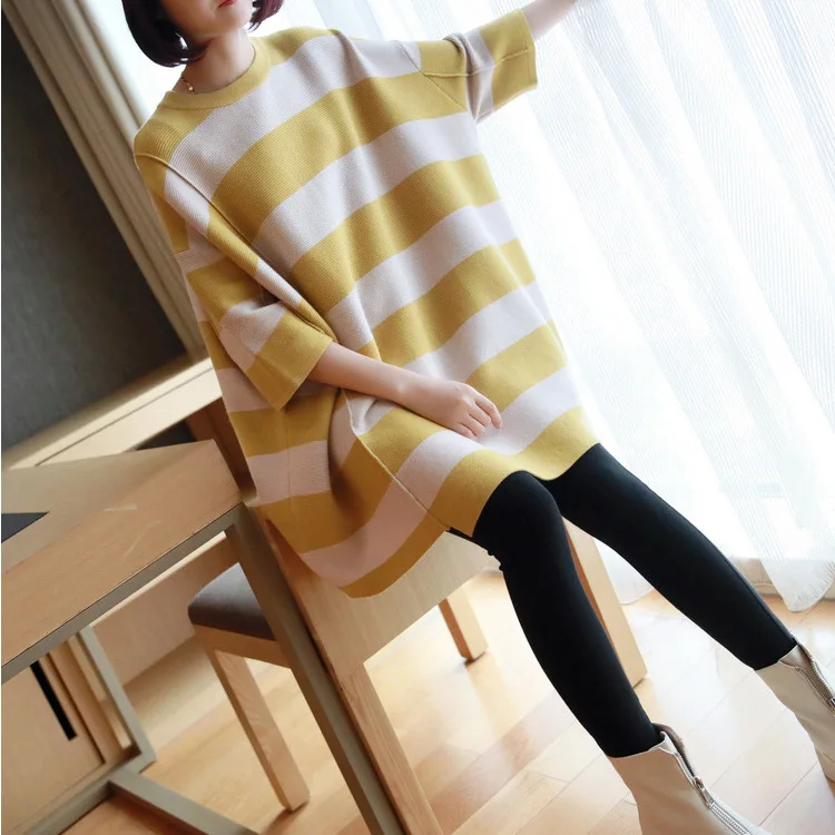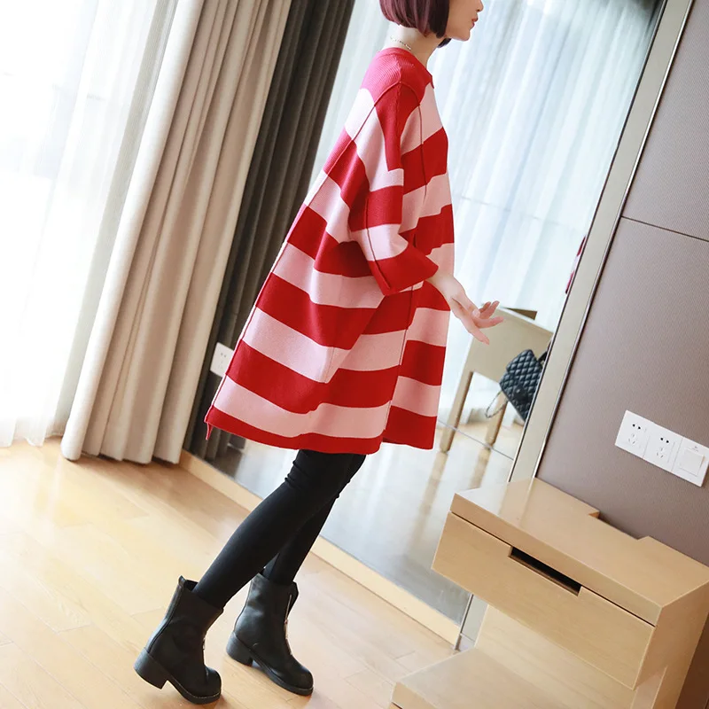 Best Price Autumn and winter large size striped sweater dress 2019 new women's fashion loose lazy wind long se