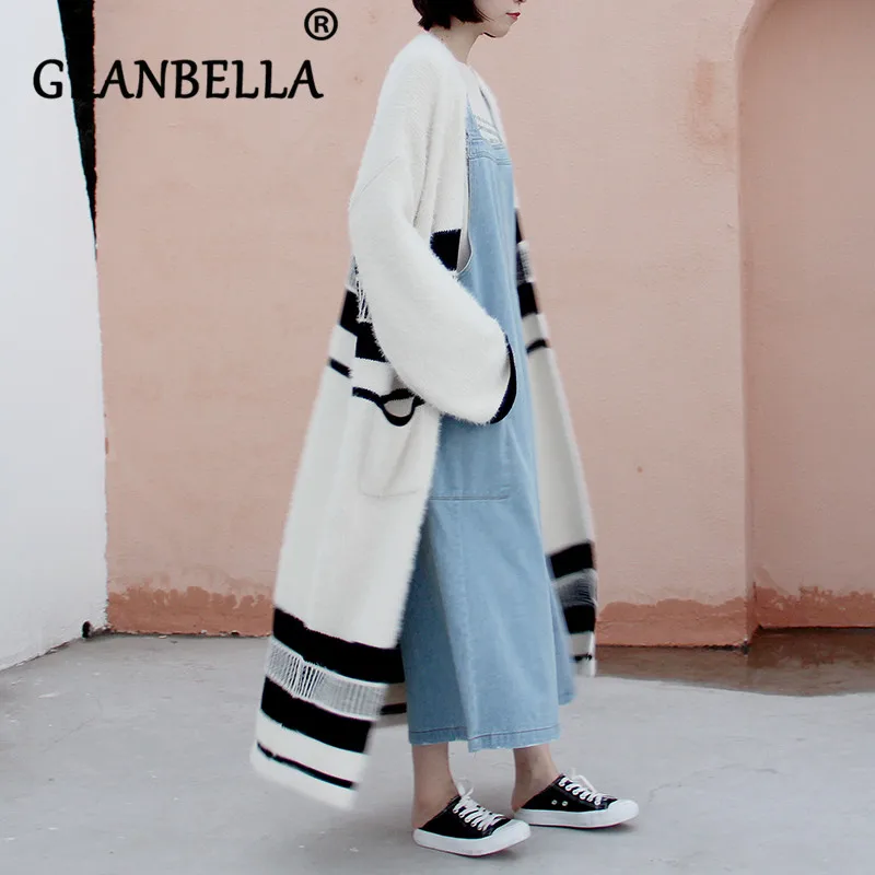 Promo Faux Mink Velvet Cardigan Sweater Women 2019 Pockets Warm Autumn And Winter Long Sweater Knitted Fe