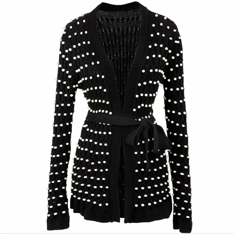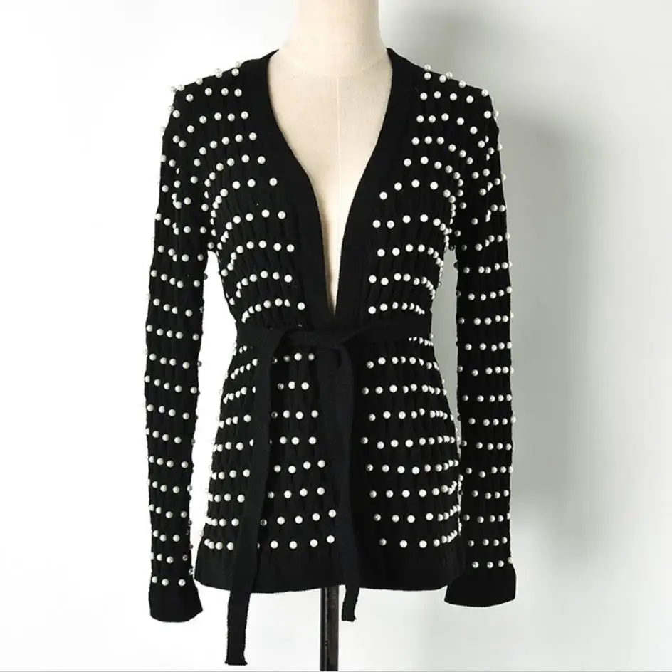 Belum ada Komentar untuk "Hot Product Pearl Beading Long Sleeve Cardigan Black V-Neck Women Elegant Winter Sweater"