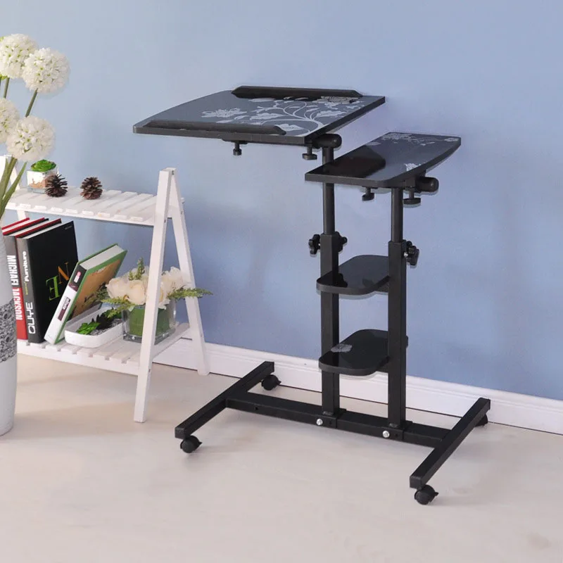 Cheap Simple Modern Double Pole Lifting Laptop Desk Free Mobile Computer Desk With Multi-function Storage