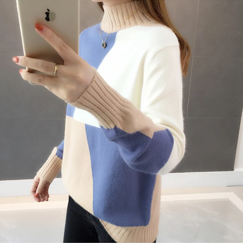 New Arrival Autumn 2019 Loose Knitted Women Sweaters Long Sleeve Turtleneck Casual Elegant Soft Women Tops Fash