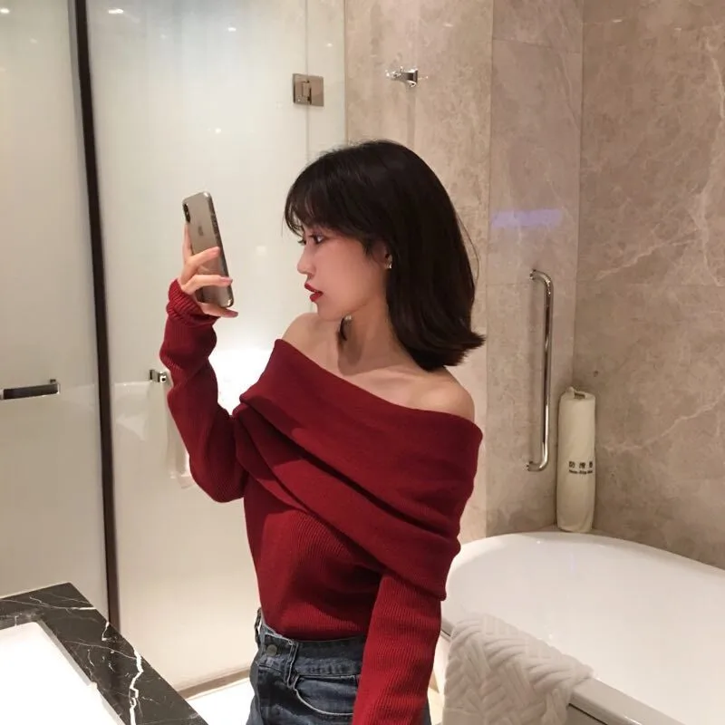 Best Price Jumper Sexy One-shoulder Sweater Women 2018 New Long-sleeved Off-the-shoulder Sleeves One Word Shou