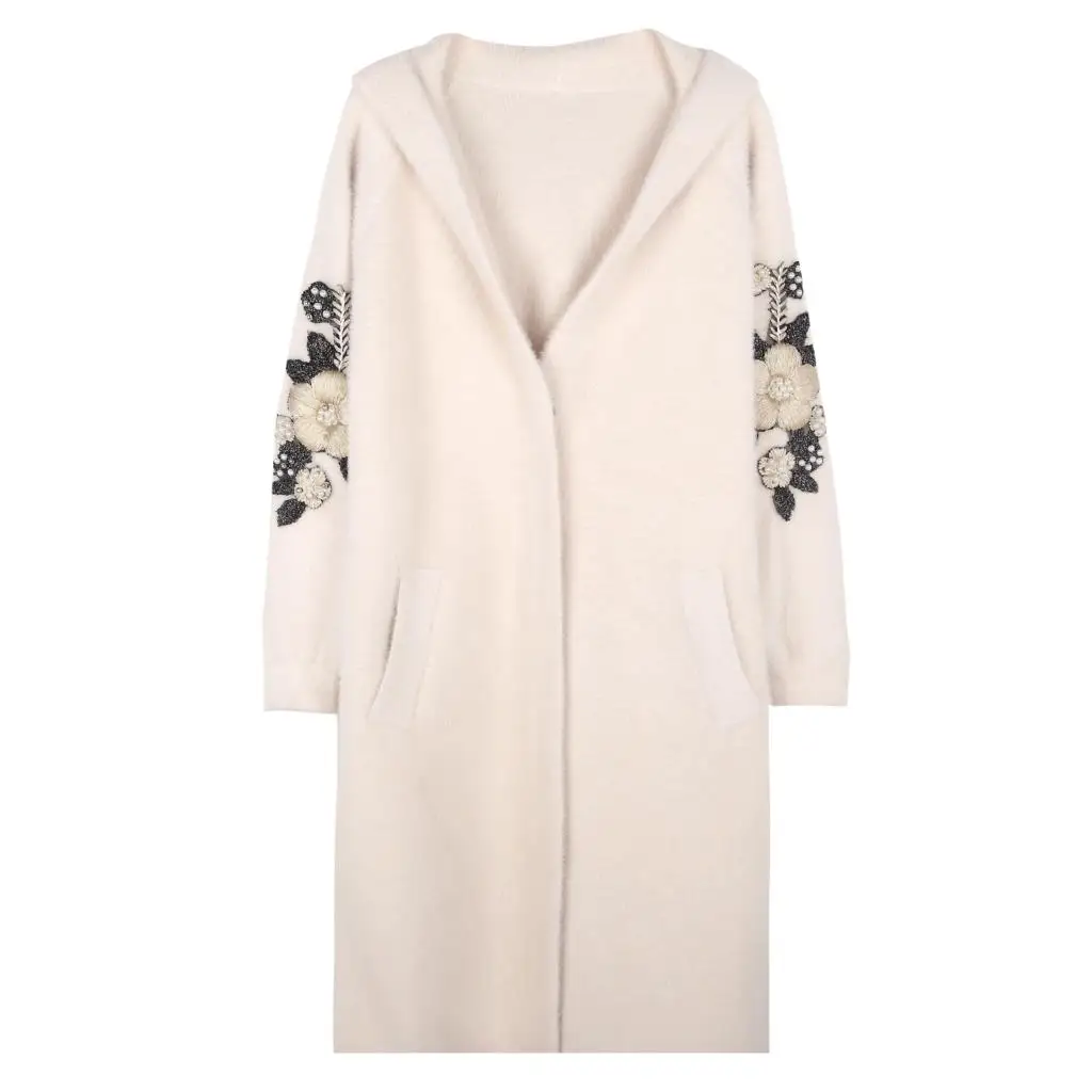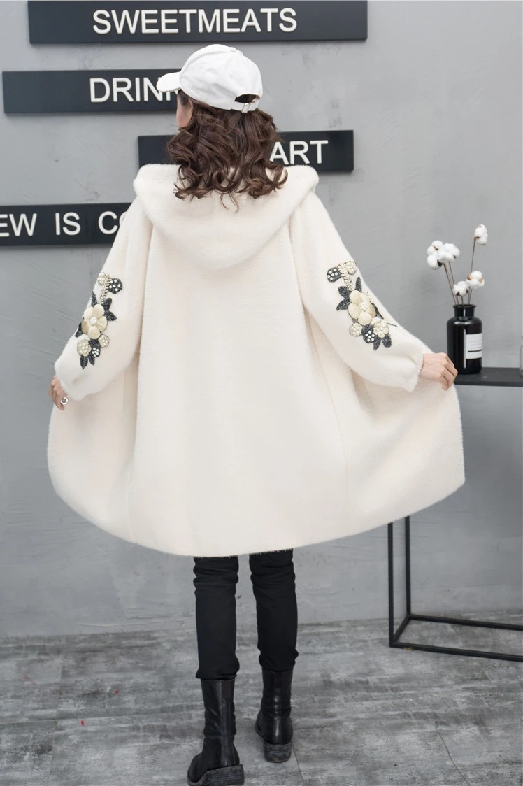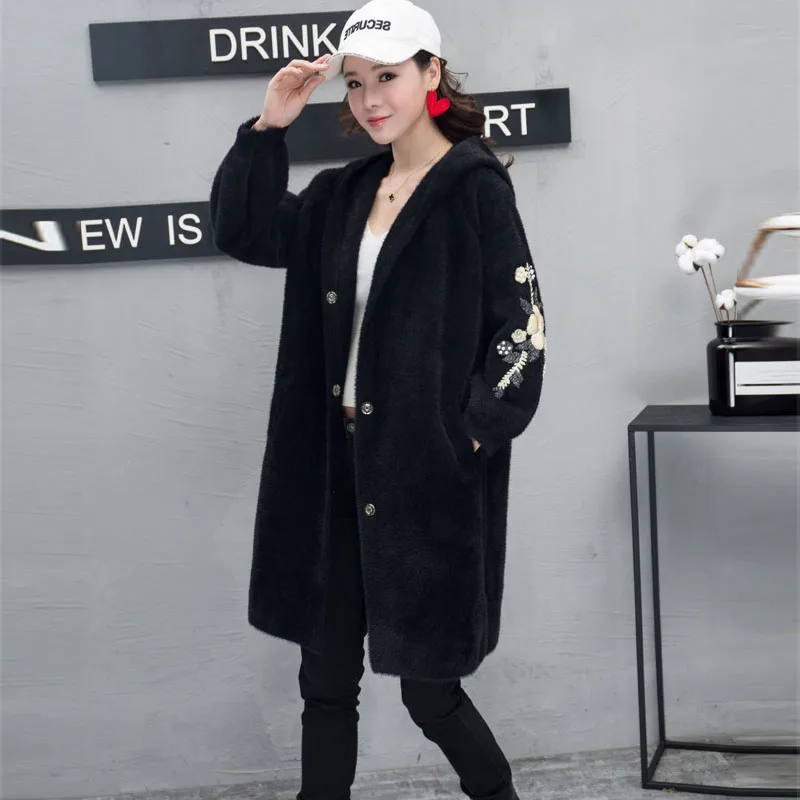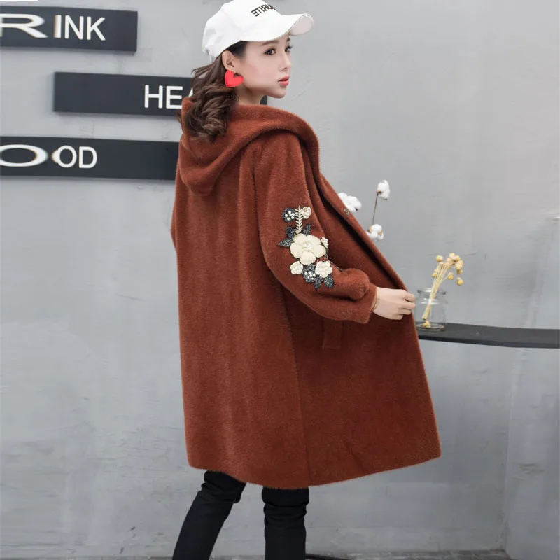 New Arrival Mink coat 2019 women's Mid Autumn New Style Embroidered knitted cardigan Hooded Coat sweater