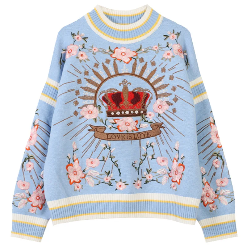 Hot Promo 2020 Autumn and winter New Retro palace heavy industry embroidery crown knitwear loose show thin Pu