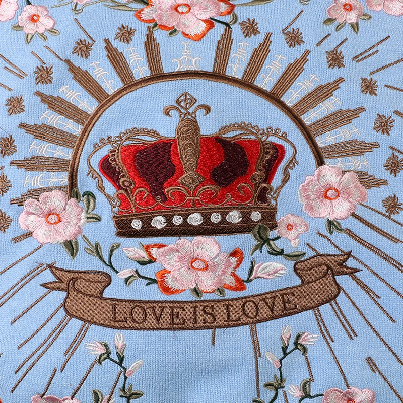 Best Price 2020 Autumn and winter New Retro palace heavy industry embroidery crown knitwear loose show thin Pu