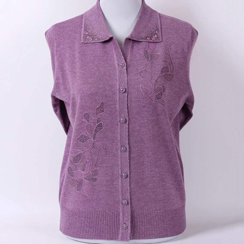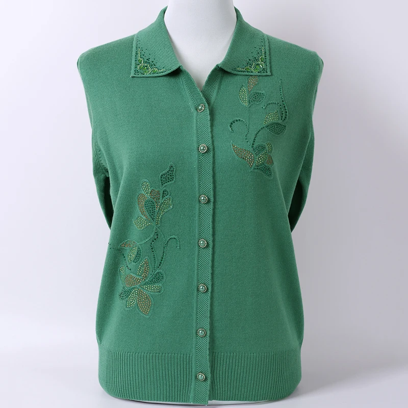 Best Price 2020 middle and old age women's sweater long sleeved top sweater grandma's lapel coat thin style c