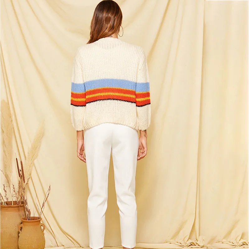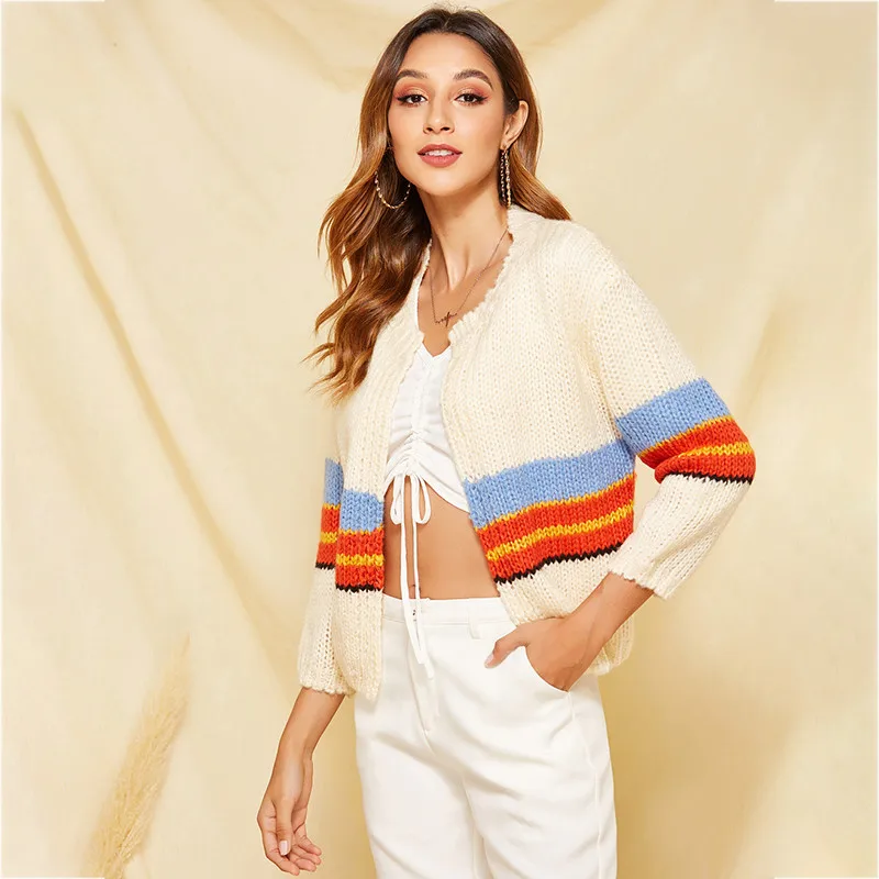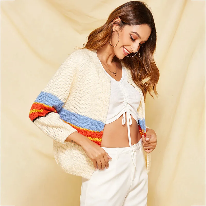 Hot Product Women's Patchwork Knitted Cardigan Sweater Long Sleeve Loose Casual Cardigans For Female 2020 Autum