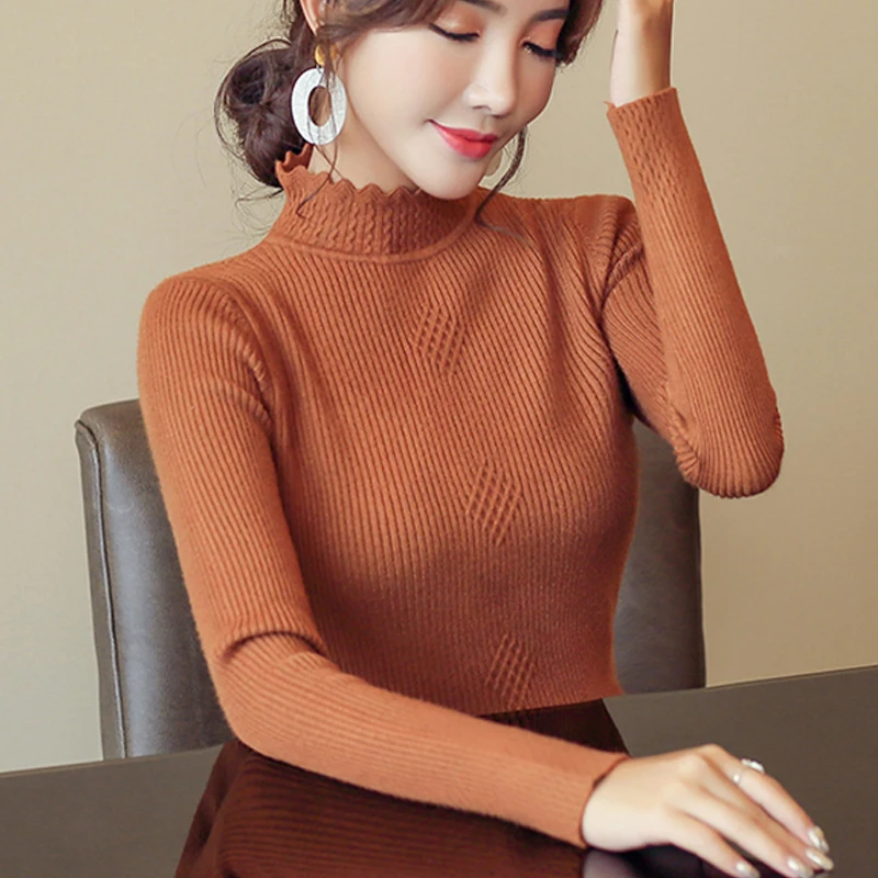Big Discount Autumn And Winter women sweaters and pullovers 2019 long sleeve solid ladies tops for women turtlen