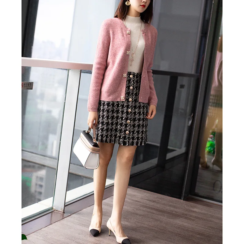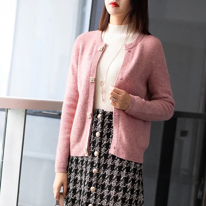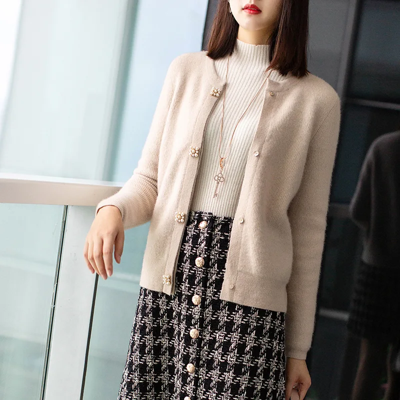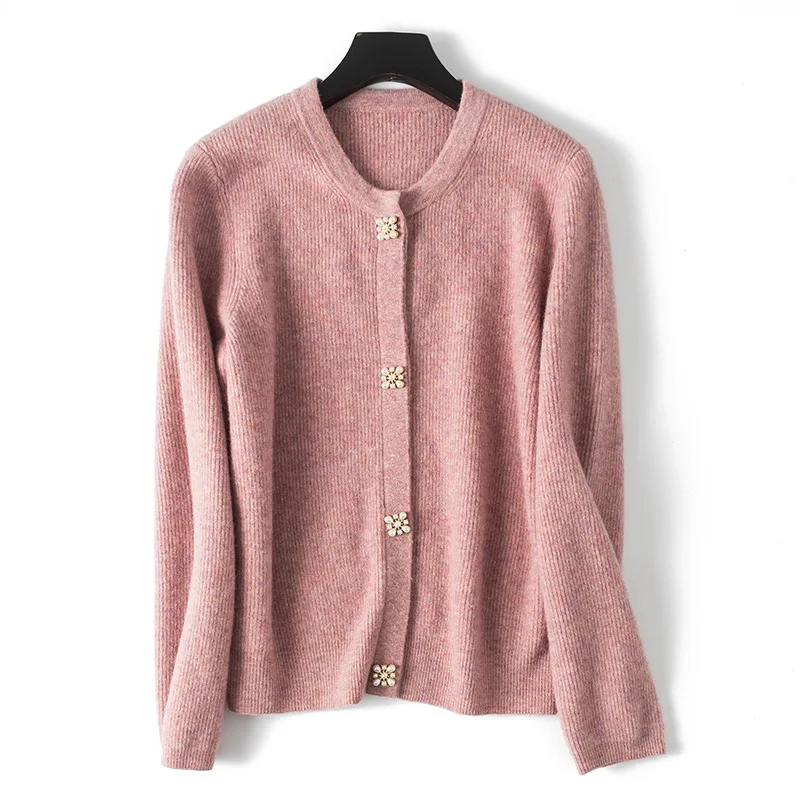 Hot Promo Edinburgh Small Fragrance Pearl Buckle Beef Cashmere Women Cardigans Autumn Comfortable Wild Wool S
