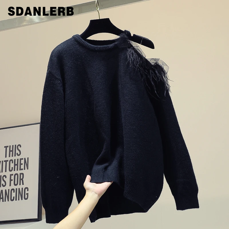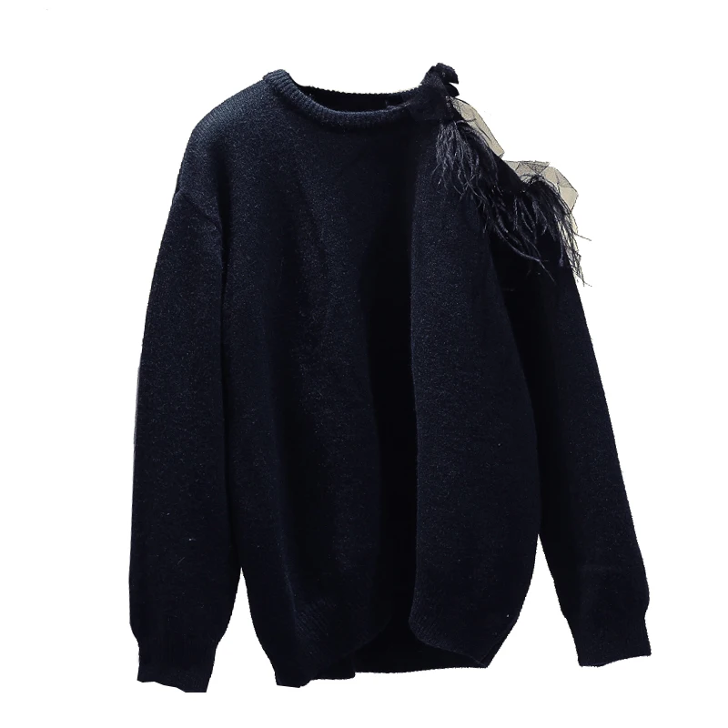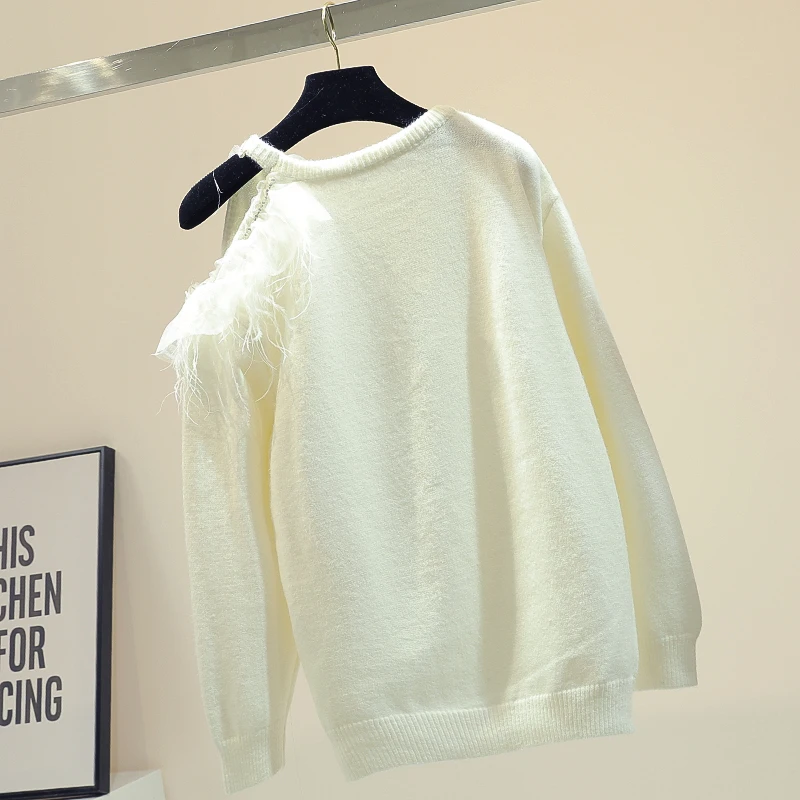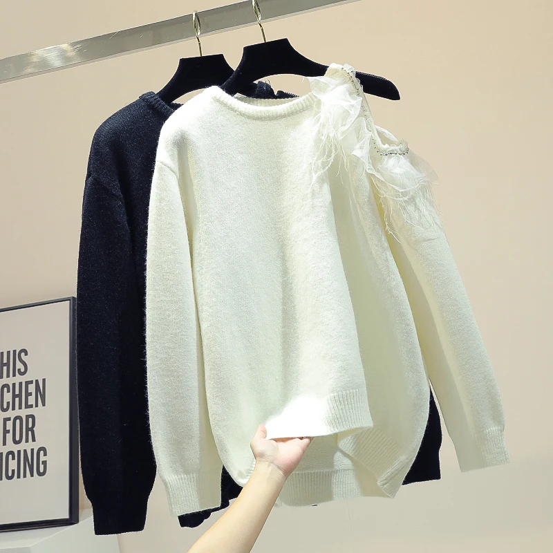 New Arrival Off Shoulder Lazy Wind Sweater Women's Autumn and Winter Outer Wear Korean Style Loose-Fit Long-Sle