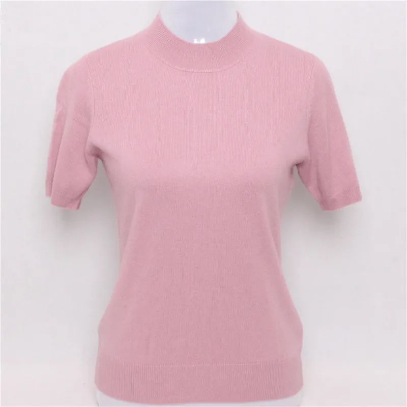 New Arrival pure goat cashmere knit women new fashion short sleeve pullover sweater lotus pink 17color S-4XL wh