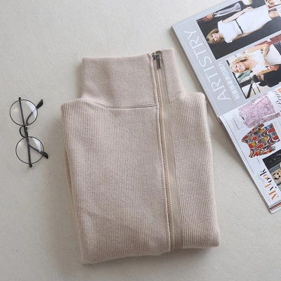 New Arrival wool cotton blend knit women fashion short zipper cardigan sweater coat high collar S-2XL wholesale