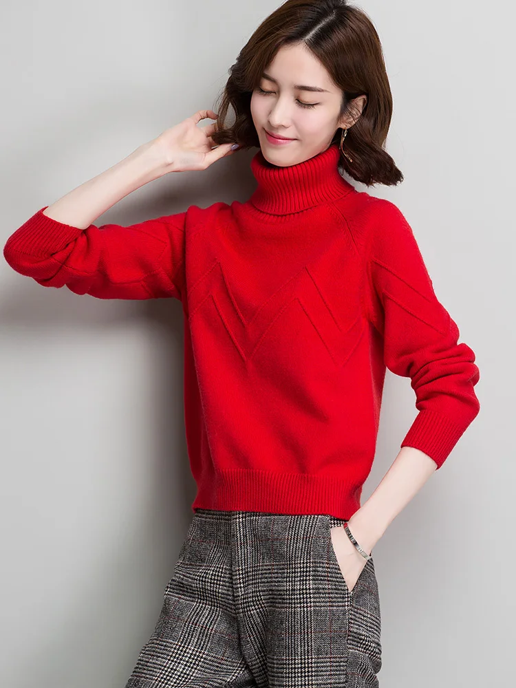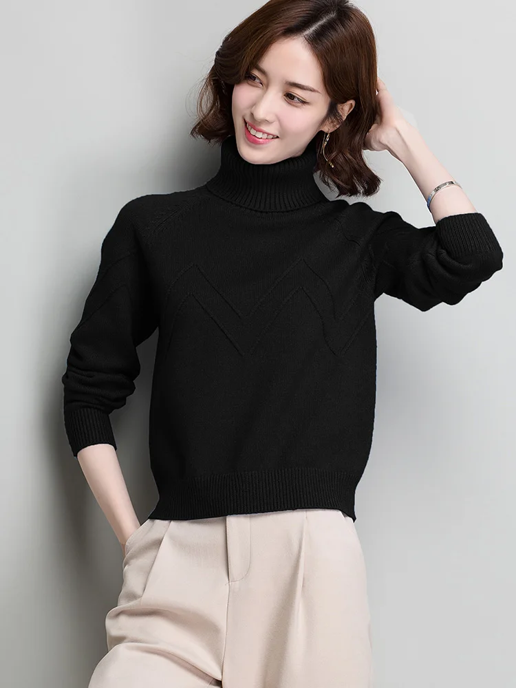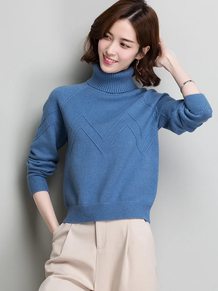 Promo High-collar blouses women's short styles autumn and winter 2020 new Pullover jacquard knitted sweat