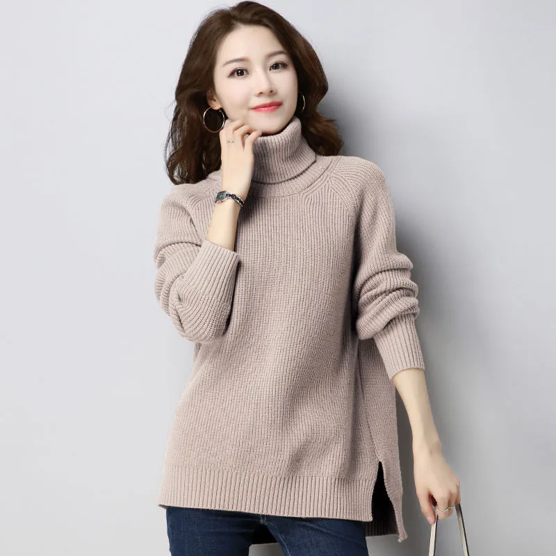 Buy High Collar Women Knitted Sweater New High Quality Loose Large Size Knitwear Casual Fashion Pullove