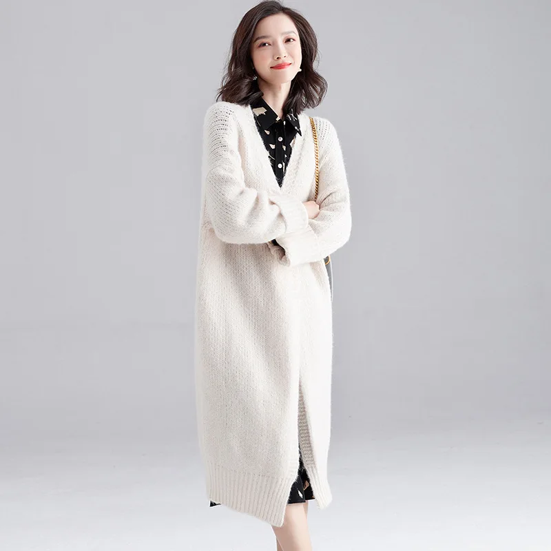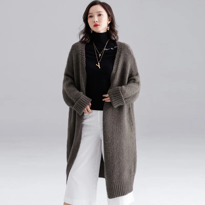 Big Discount lazy knitting cardigans women's medium long loose Long sleeve Office lady new Trend All match sweat
