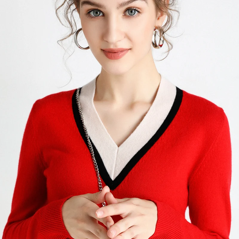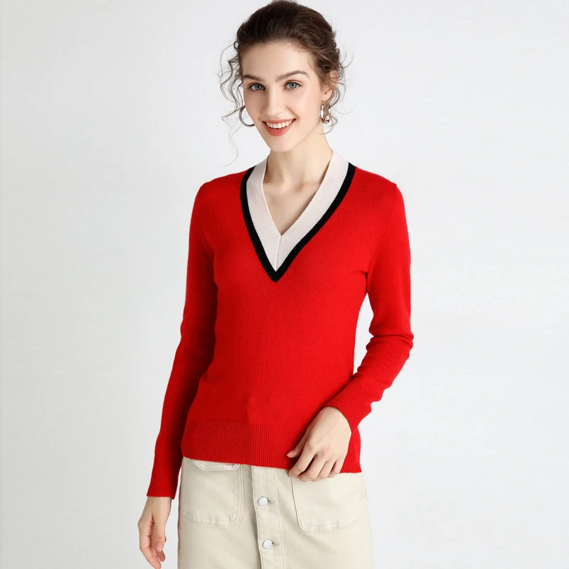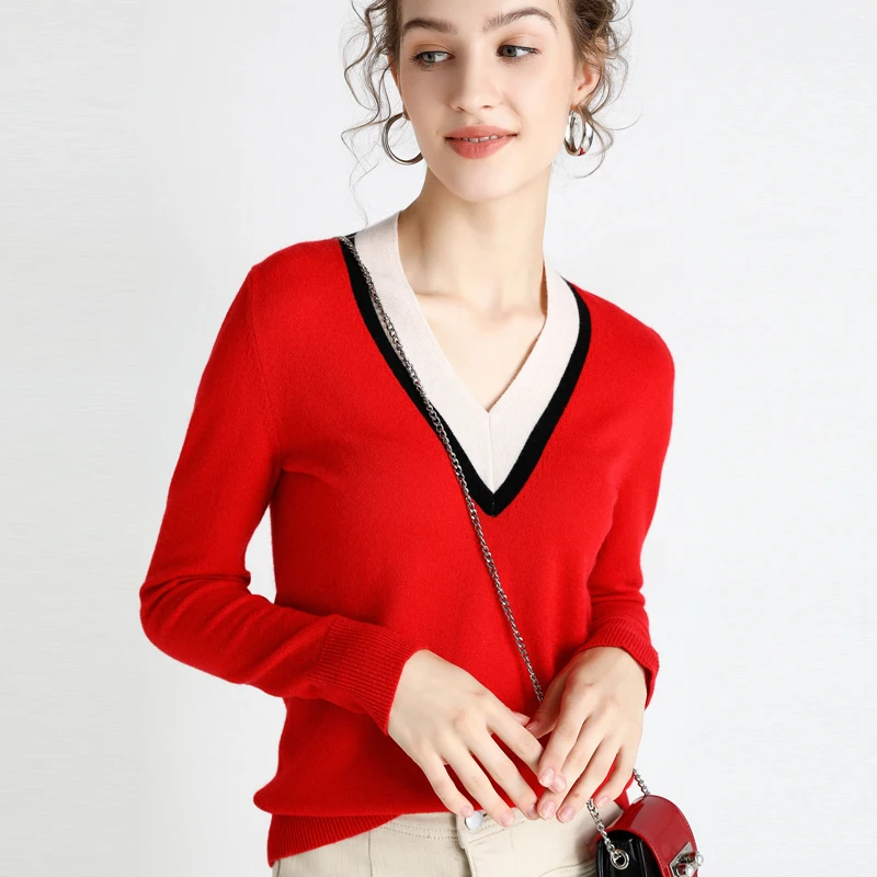 Big Discount 2019 winter new women's sweater bottoming shirt V-neck Korean version of the self-cultivation solid