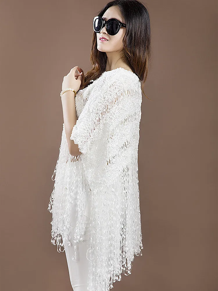 Promo Sexy Tassel Large Size O-Neck Sweater Women 2018 Loose Hollow Hook Flower Cloak Shawl Long Bat Shir